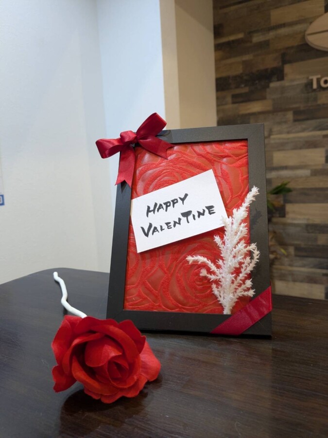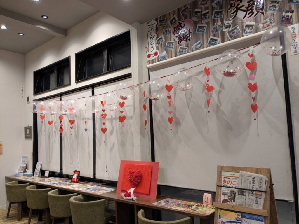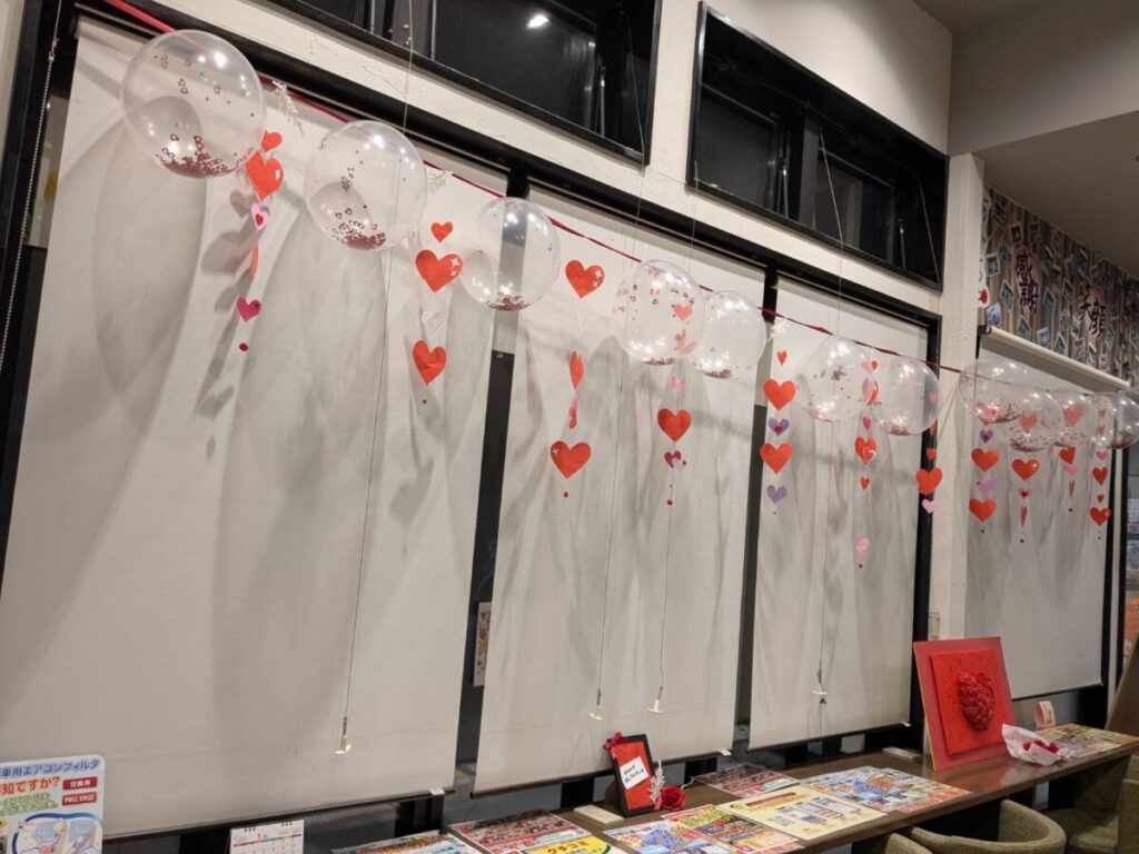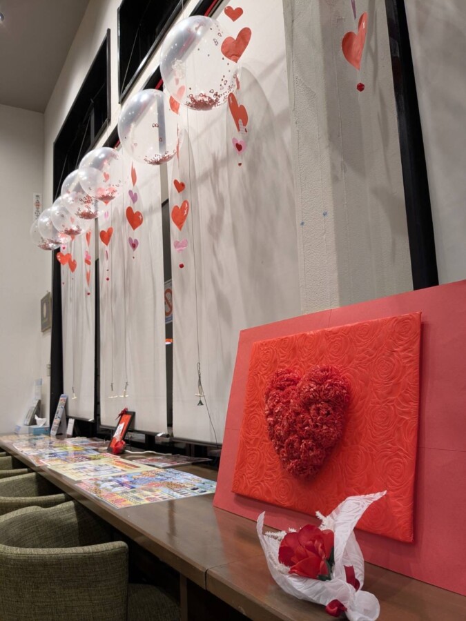 バレンタイン装飾で賑やかカワイイ待合室には、映えポイントもありますよ💕