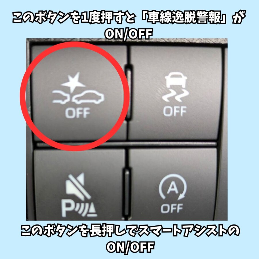 もし間違って押してしまったら、車線逸脱警報機能のみOFFの場合は短く押すと