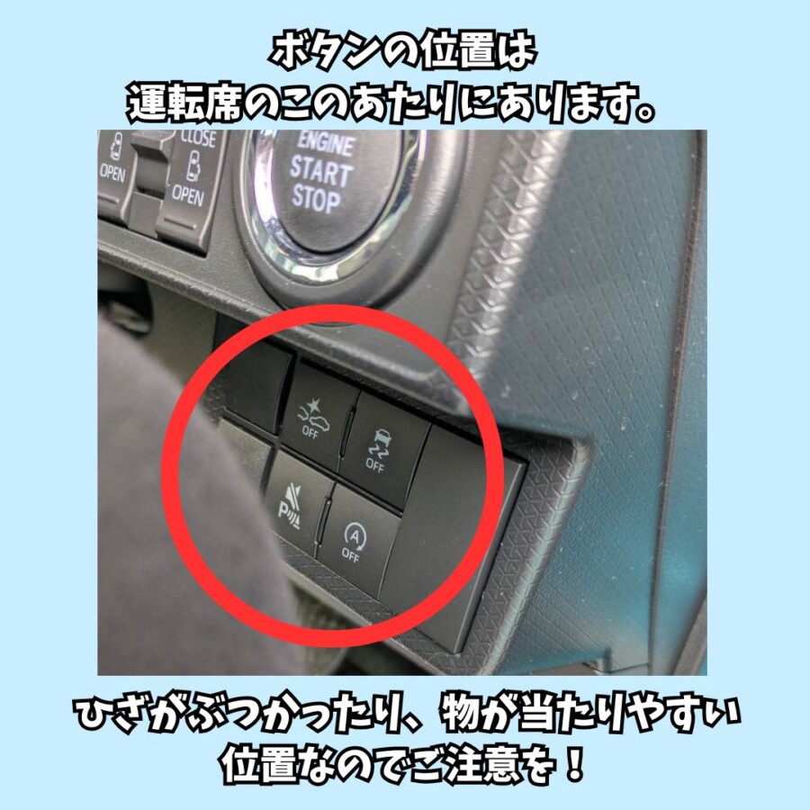 スマートアシストのON/OFFボタンは、2秒長押しでON/OFFの切り替え、短く押すと