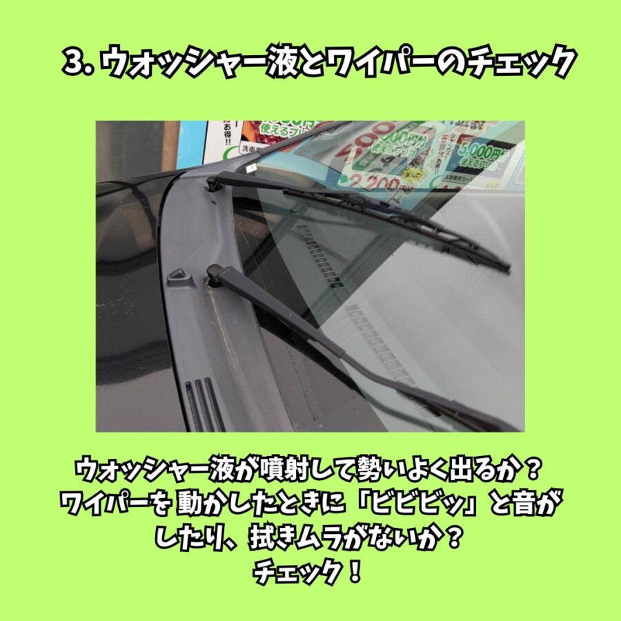 - ウォッシャー液とワイパーのチェック