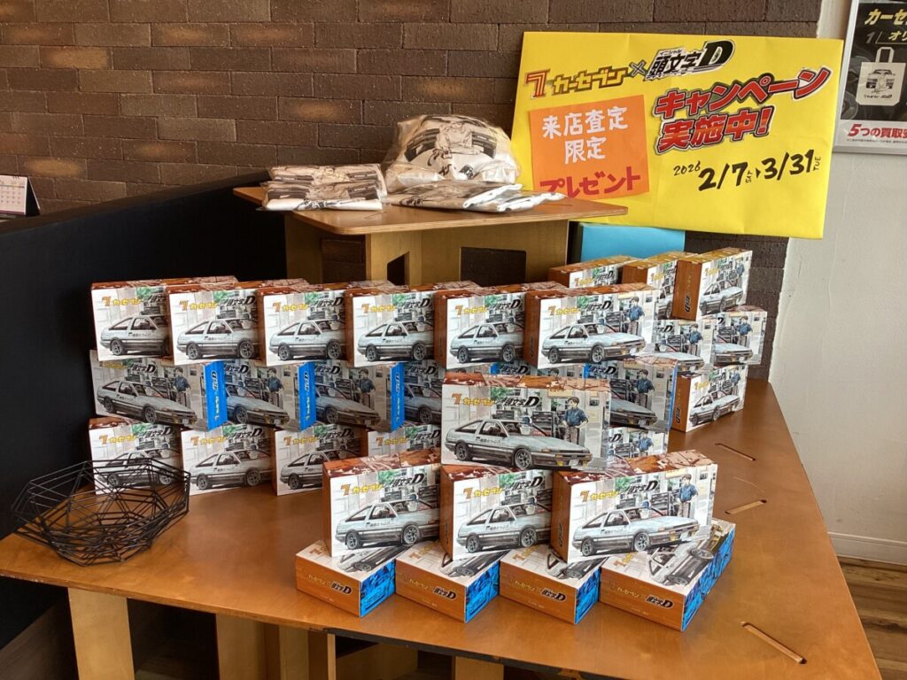 現在、店内はすっかりバレンタインからカーセブンの「頭文字Dコラボキャンペーン」の装いに様変わりしております🤩